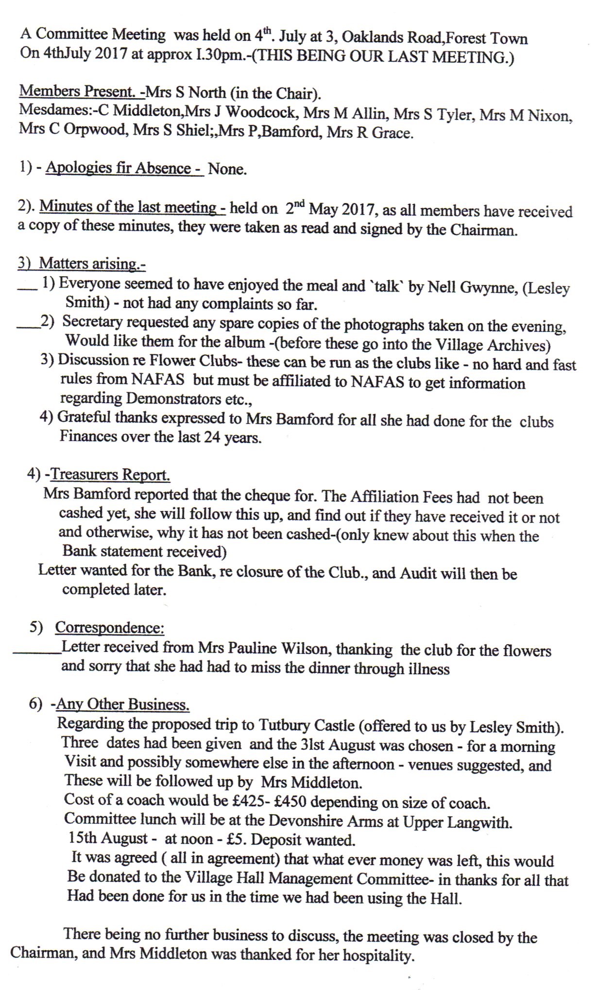 Final Flower Club Committee Meeting 2017