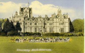 Charles William Sydney Pierrepont, 4th Earl Manvers (1854 – 1926) was Master of the Rufford Hounds. Pictured here with his huntsman outside Thoresby Hall.